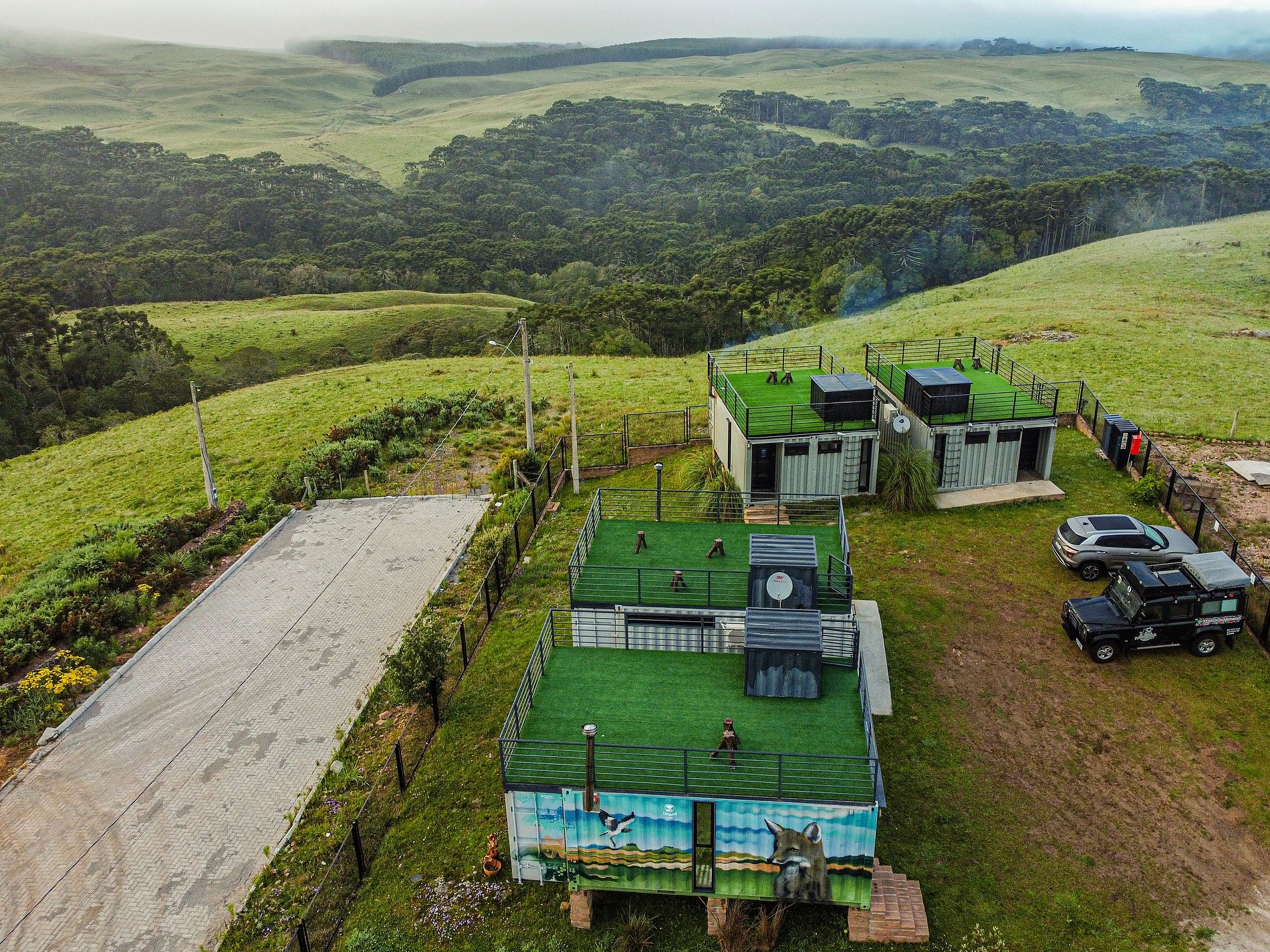 Construção totalmente diferenciada feita de containers, com um espaço que permite muito conforto e localizado num local de singular beleza. Localizado a 800 metros do centro de Cambará do Sul-RS, possui a tranquilidade do campo e a vista incrível de um vale. O café da manhã está incluso no valor da reserva! =)